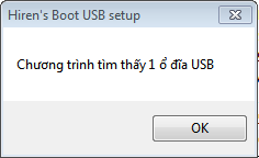 - Sau khi chép toàn bộ source hirensboot vào usb sẽ xuất hiện thông báo đã xử lý thành công. Nhấn OK để kết thúc quá trình.